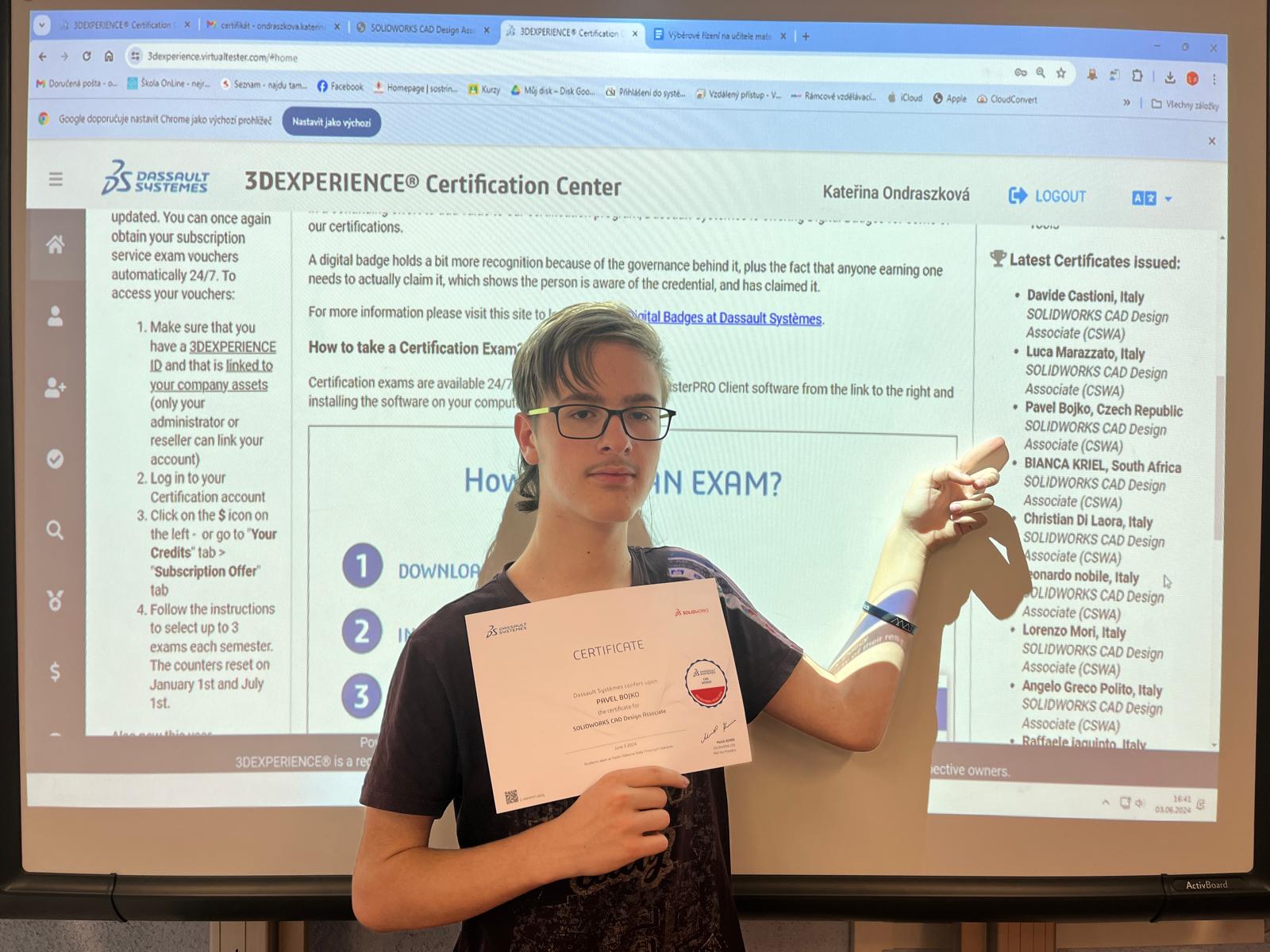 Dne 3. 6. 2024 se žáci z kroužku SolidWorks, 3D tiskárna pokusili o certifikaci.