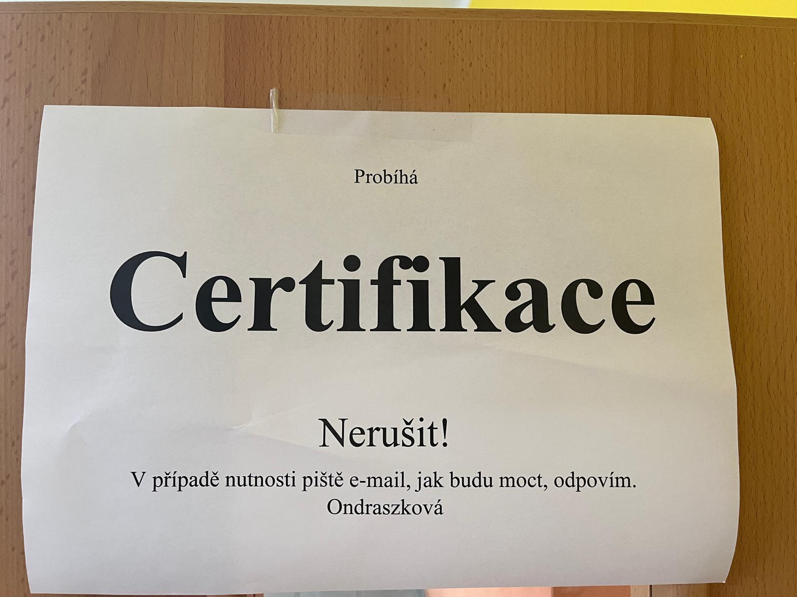 ale získali jsme informace, co a jak dopilovat na příště. (Tito žáci už mají CSWA). Timotej se neúčastnil, byl nemocný. Certifikaci měli skládat i už bývali studenti EL 4, ale jsou