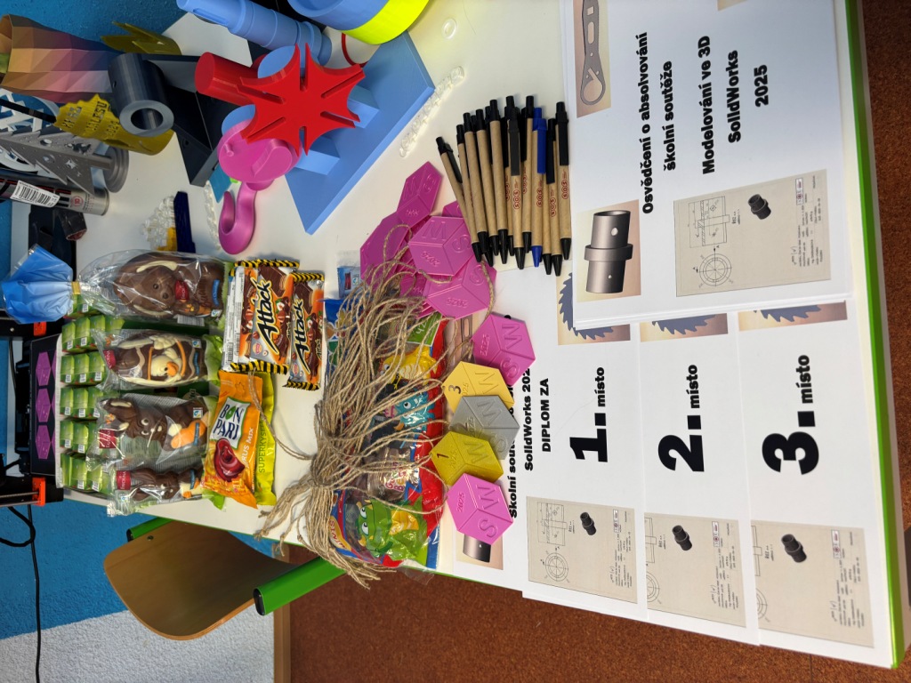 Dne 17. 3. 2025 proběhla školní soutěž v modelování v programu SolidWorks.Zúčastnili se jí celá třída MZ 4 a žáci z kroužku - 3D modelování v SolidWorks, 3D tiskárna: